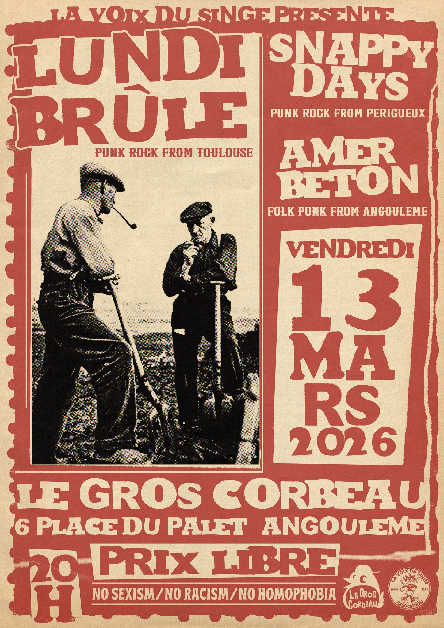 PUNK ROCK AU GROS CORBEAU: LUNDI BRULE + SNAPPY DAYS + AMER BETON !