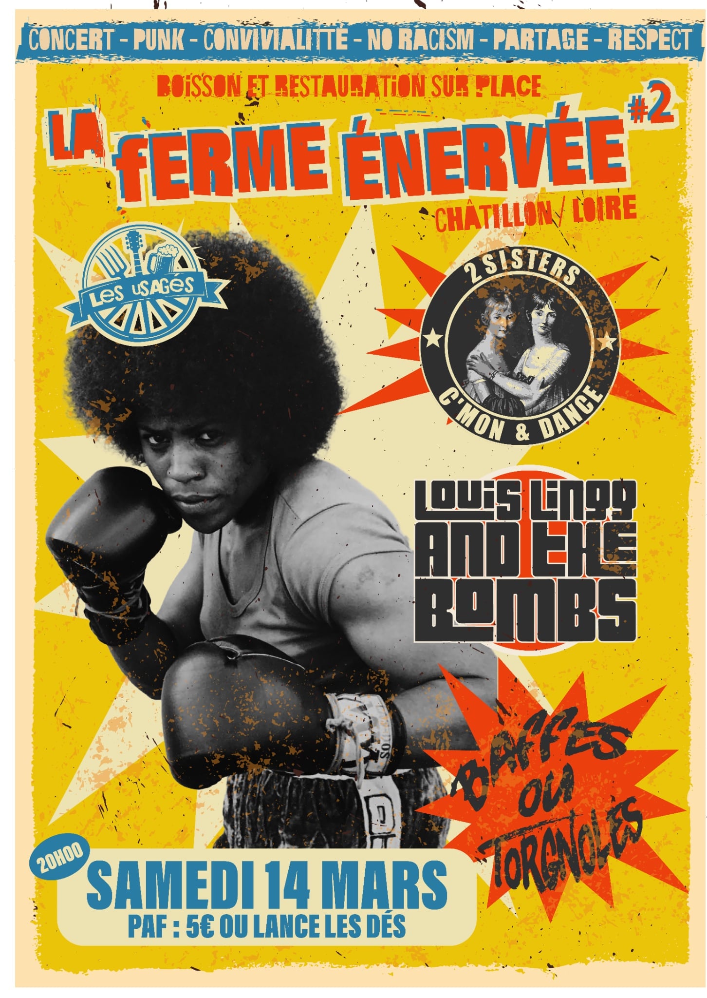 Et c'est reparti pour la première date de 2026, alors à vos agendas ! 🥳 Quoi de mieux qu'une chouette soirée en toute convivialité avec du bon son énervé & des copaines pour l'arrivée imminente du printemps ? ========== SAMEDI 14 MARS ========== 🔊 Au programme : - "2 SISTERS" // Punk-Rock // : https://two-sisters.bandcamp.com/album/cmon-dance-ep1 - "BAFFES OU TORGNOLES" // Punk-Rock // (Nouvel album en approche ! 👀) : https://baffesoutorgnoles.bandcamp.com/.../vous-cassent... - "LOUIS LINGG AND THE BOMBS" // Punk-Rock-Garage-Electro-big beat-pop-anarcho // : https://louislinggandthebombs.bandcamp.com/.../can-you...