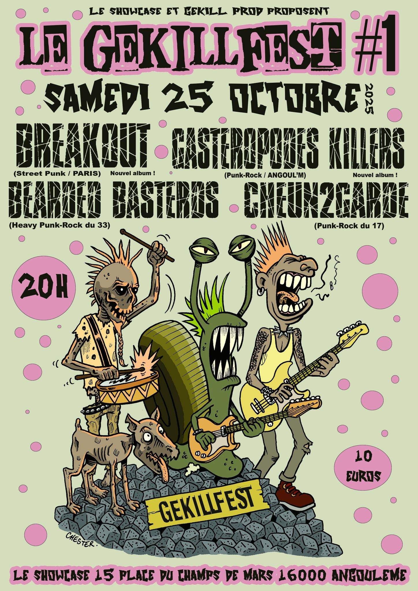 Pour célébrer la réouverture du Showcase, le festival « GEKILL’FEST#1 » propose le 25 Octobre 2025 un plateau alléchant de 4 groupes venant des départements 16, 17, 33 et 75