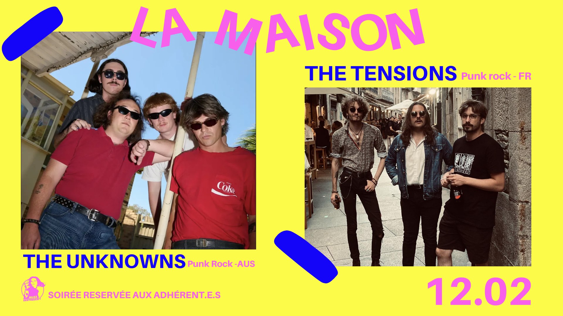 The Unknowns đŠđș + The Tensions Ă la Maison JEUDI 12 FEVRIER Ă la maison Allez Les Filles. 8⏠(rĂ©servĂ© aux adhĂ©rents de l'association)